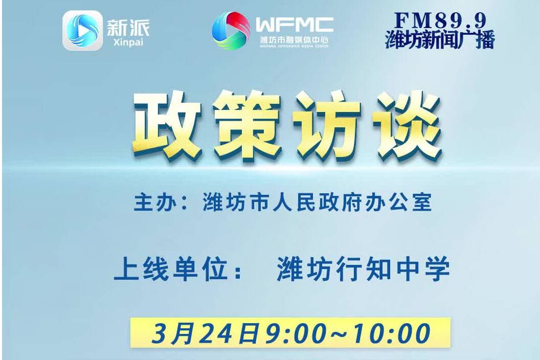 3月24日上午9:00~10 00,濰坊行知中學(xué)黨總支副書記、校長崔玉程將走進(jìn)市融媒體中心新聞?lì)l率《政策訪談》欄目直播間,敬請關(guān)注!